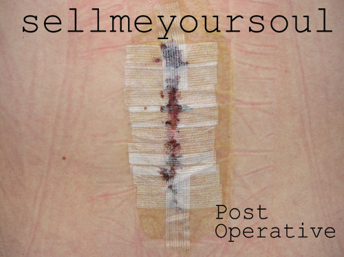 sellmeyoursoul sprung forth from the womb late 1997, in the basement room of a slum in Brookline, Massachusetts. Having scraped together enough parts to build a PC, the key component of which was a used 8 bit sound card. One swiped copy of Soundforge later and I was in business. Everything came in with a nice electronic distortion as the card slowly died. It soon became apparent that the equipment was insufficient for the needs of SMYS so, within months of college graduation, a student loan was applied for and received. The corresponding tuition refund went right into the studio. Switching from the PC to a Mac, where sellmeyoursoul has remained since, I got the lowest end Pro-Tools setup and an Alesis keyboard. With the new setup, I began rerecording the the first true sellmeyoursoul songs. Just over a year later, two key events happened right on top of each other and they both had a big part in shaping what is sellmeyoursoul today. I began dating my wife and had my first back surgery. From then on, songs about women became songs about pain and the effects that it has on one's mind. That has been a running theme since. Over the last ten years, over fifty songs have been written and recorded along with even more abortions that for whatever reason, failed to make the cut before they were completed. In recent years sellmeyoursoul has been battling for my attention with my writing ambitions, wife, daughter, health and job. Output may have slowed a bit of late, but rest-assured, as long as I'm able to make sound go into a computer, sellmeyoursoul will be. Here's to another ten years of all the shit that's fit to spit!